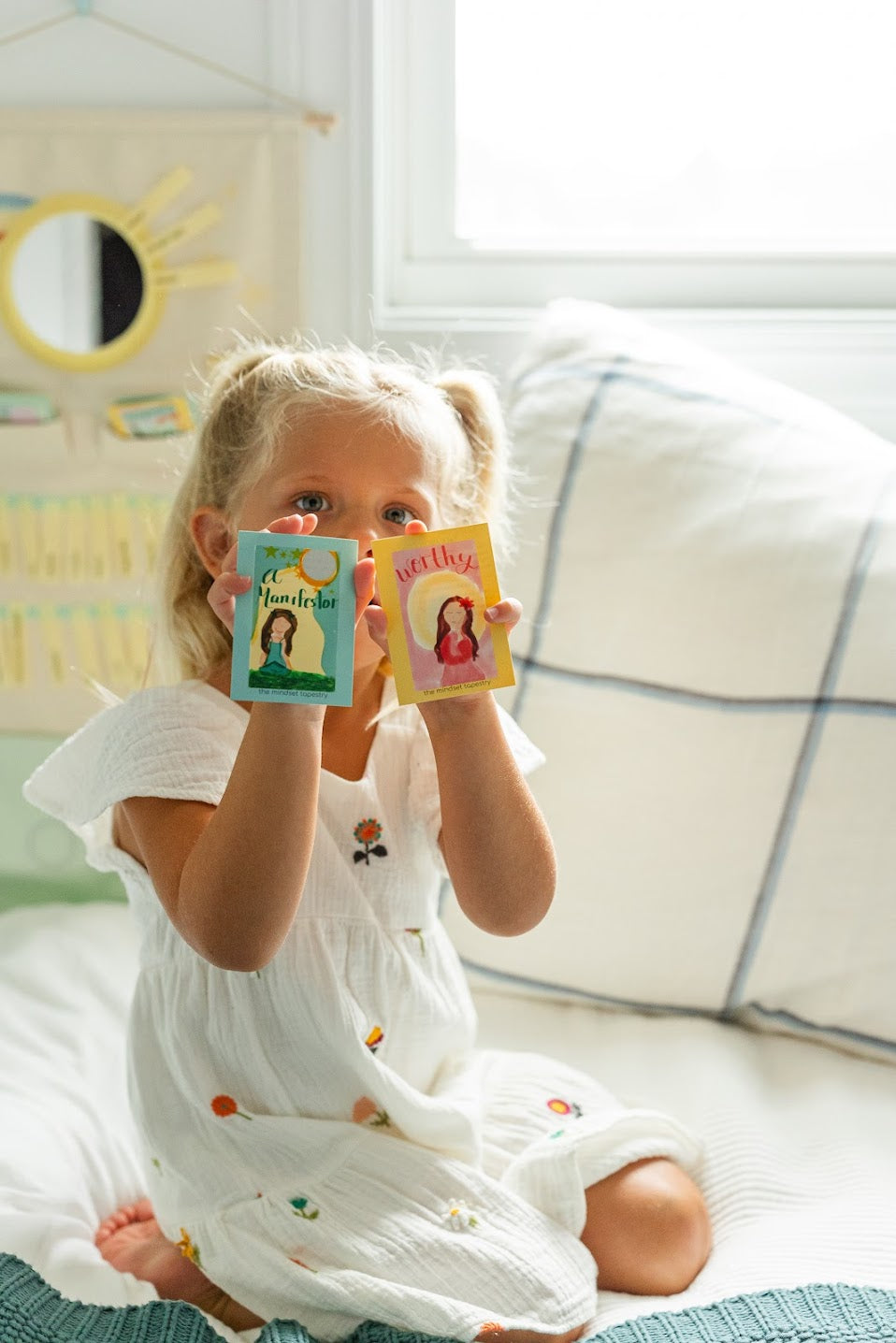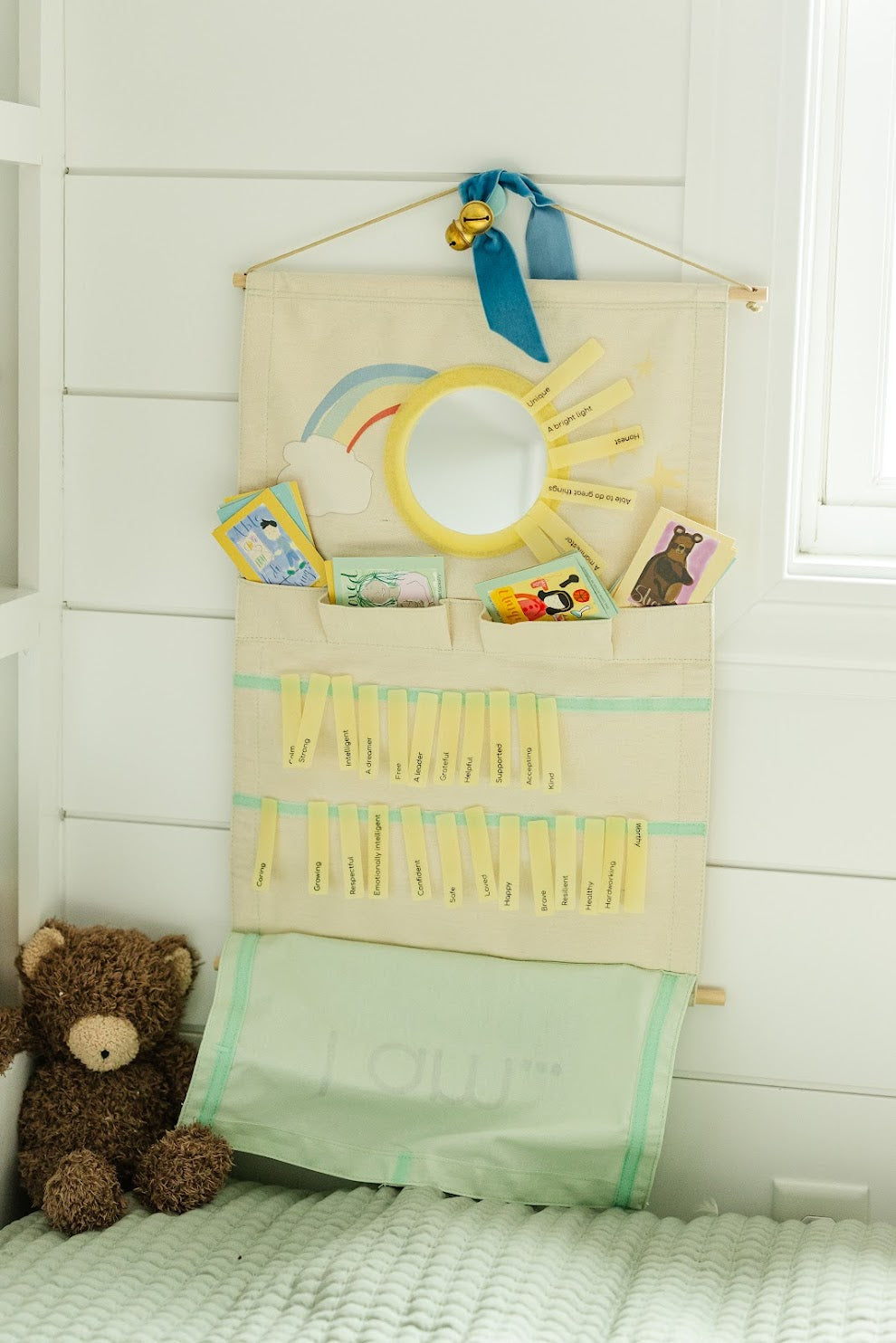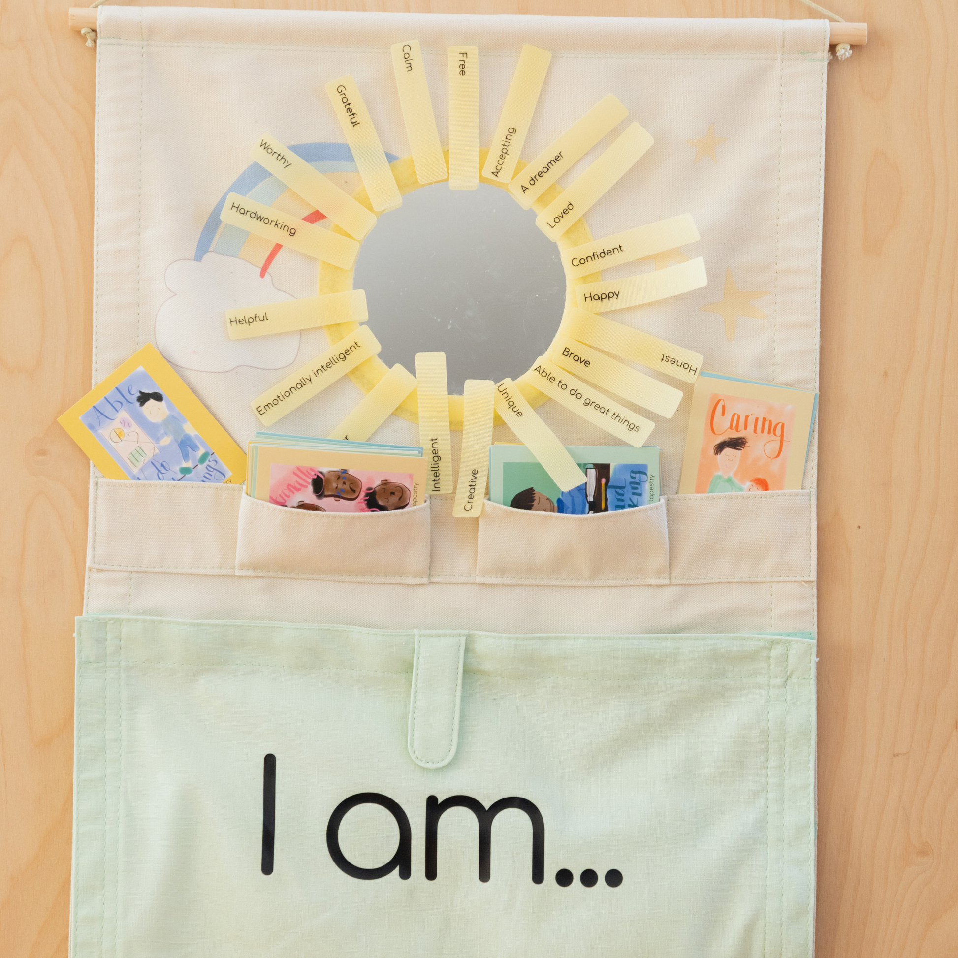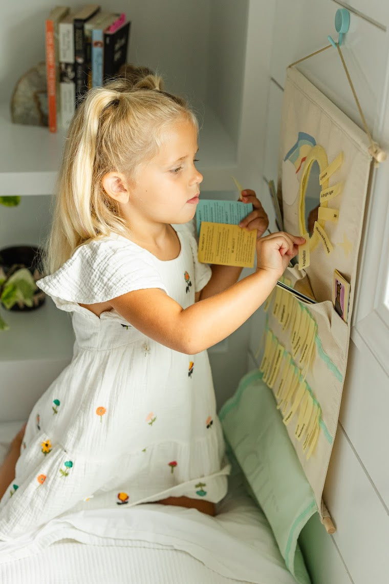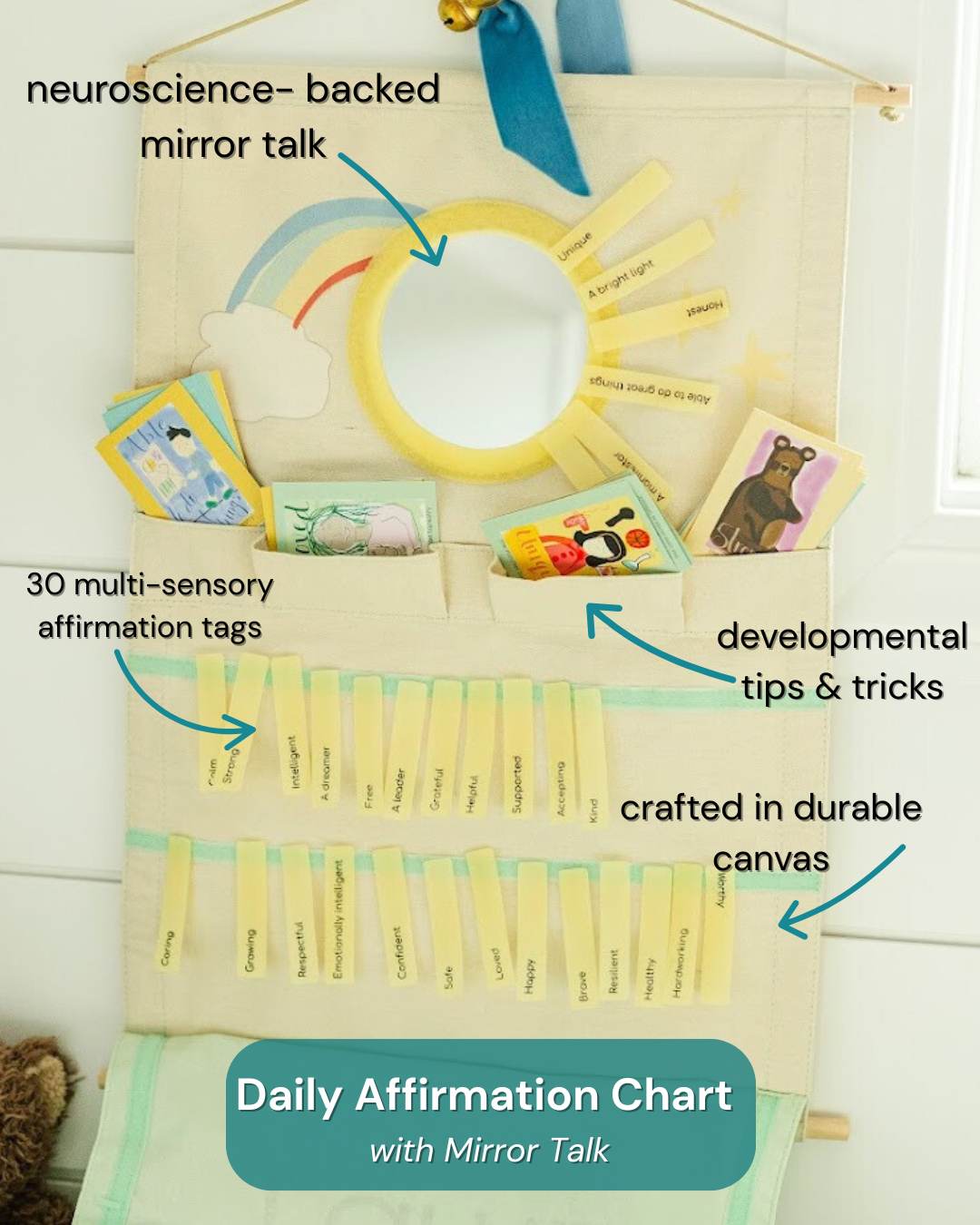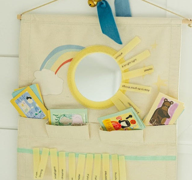 With colorful affirmation tags and whimsical caregiver cards, this tapestry transforms self-talk into a joyful, shared adventure. Perfect for morning rituals, bedtime calm, or anytime your child needs a confidence boost.